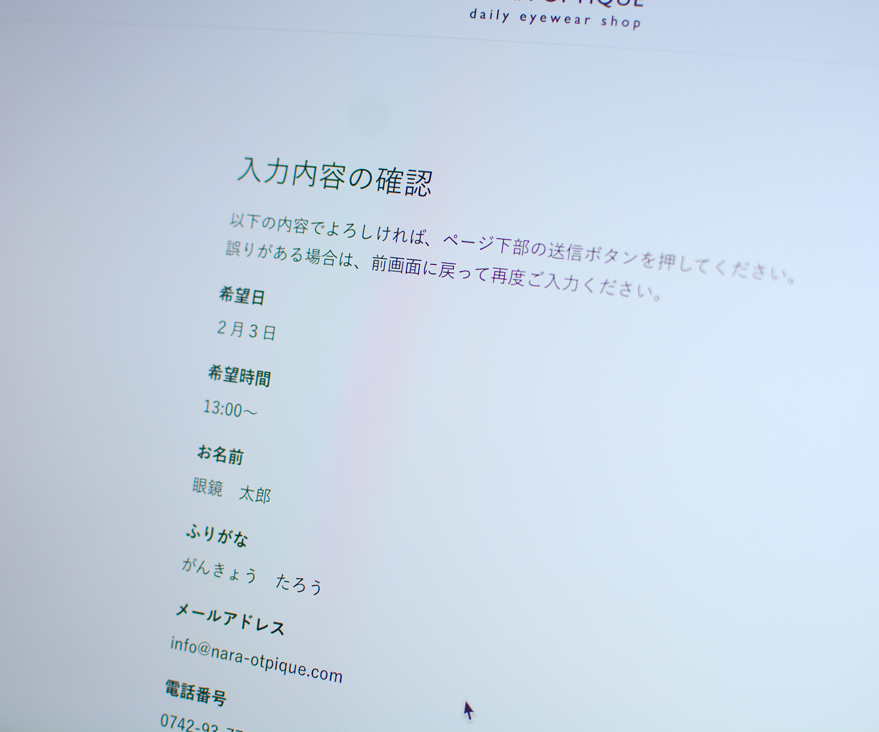 ④ご入力いただいた内容の最終確認画面が出ます