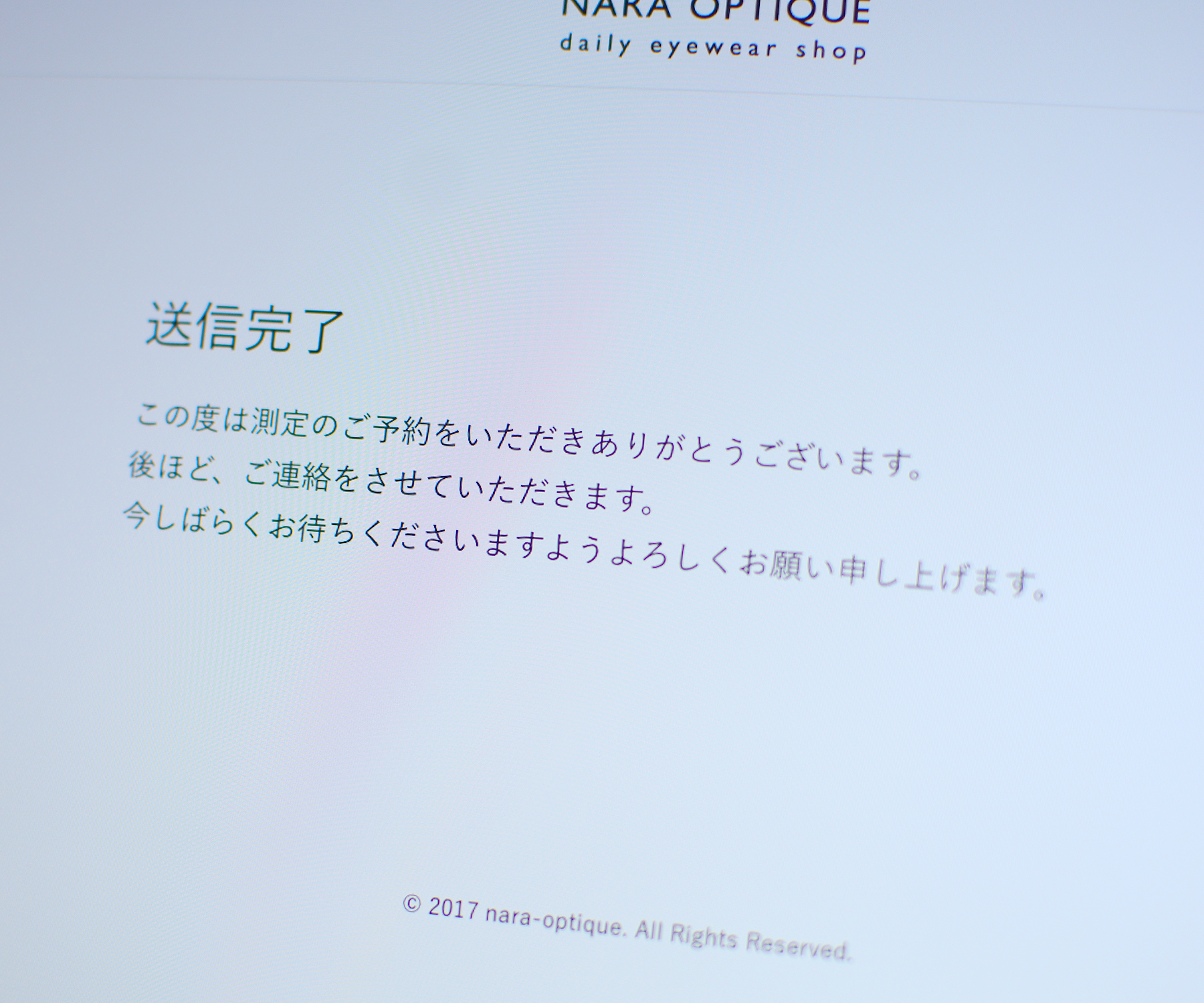 ⑥送信完了の画面が出ると測定ご予約依頼のメール送信完了です