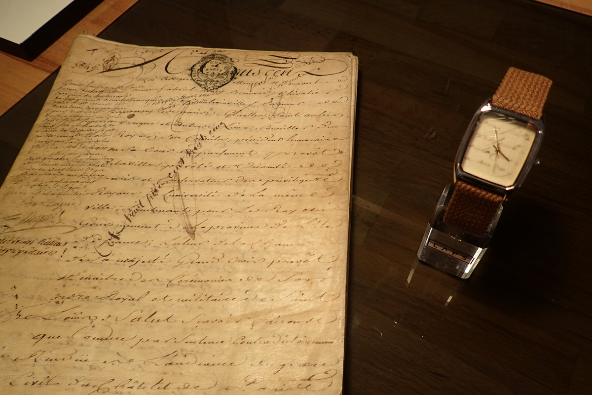 50年代の古い手紙を時計のデザインとして再利用したものらしい、、、