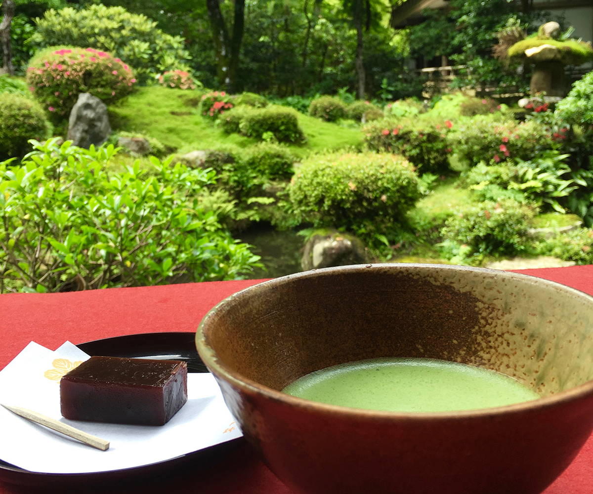 せっかくなので庭園を見ながらお抹茶と羊羹をいただきました