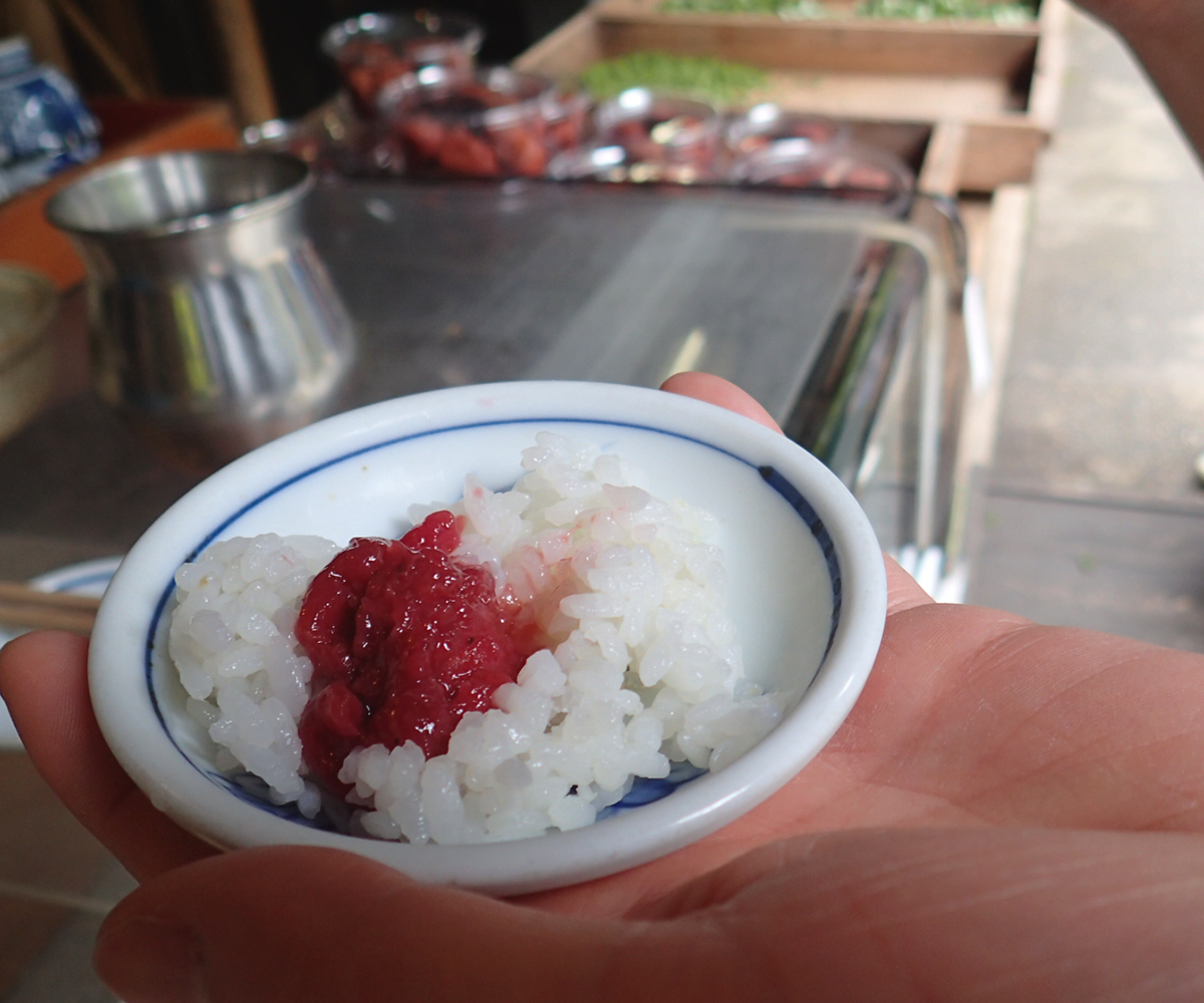 寂光院の真向かいにあるお漬物屋さんの梅干し