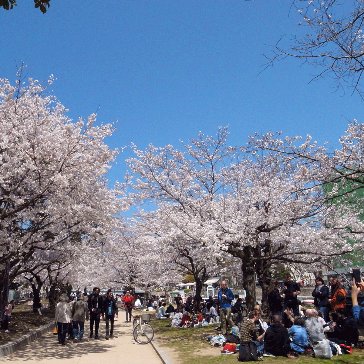外に出ると川沿いの桜並木でいろんな国の人たちが