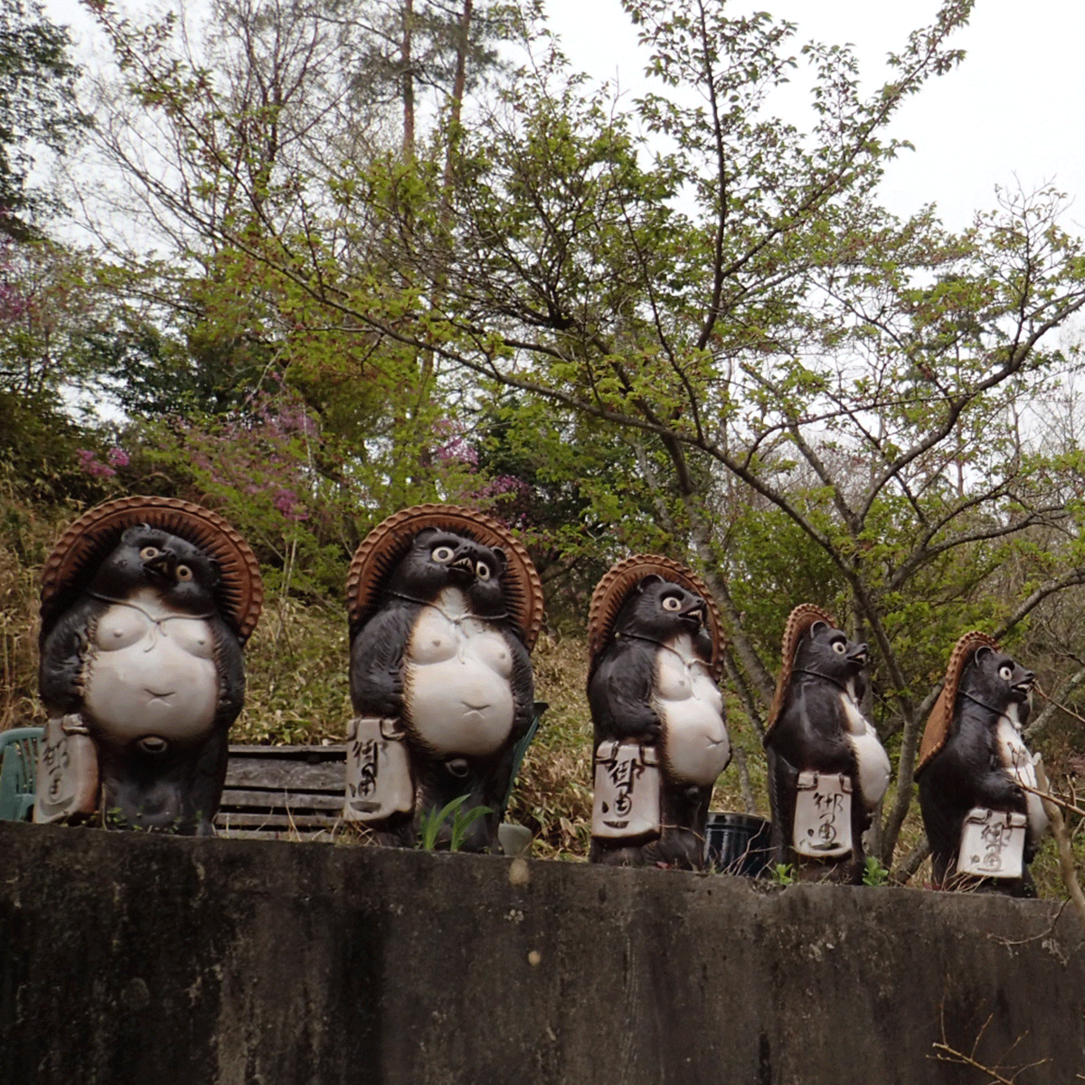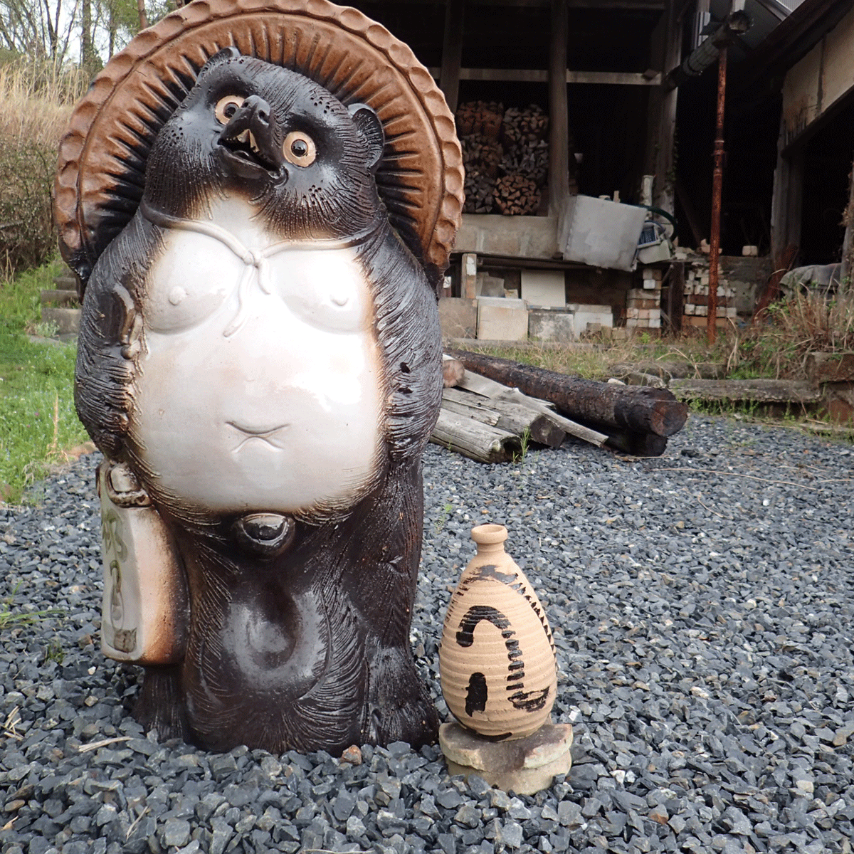 この辺りのお家の庭先には結構タヌキの置物がありましたよ