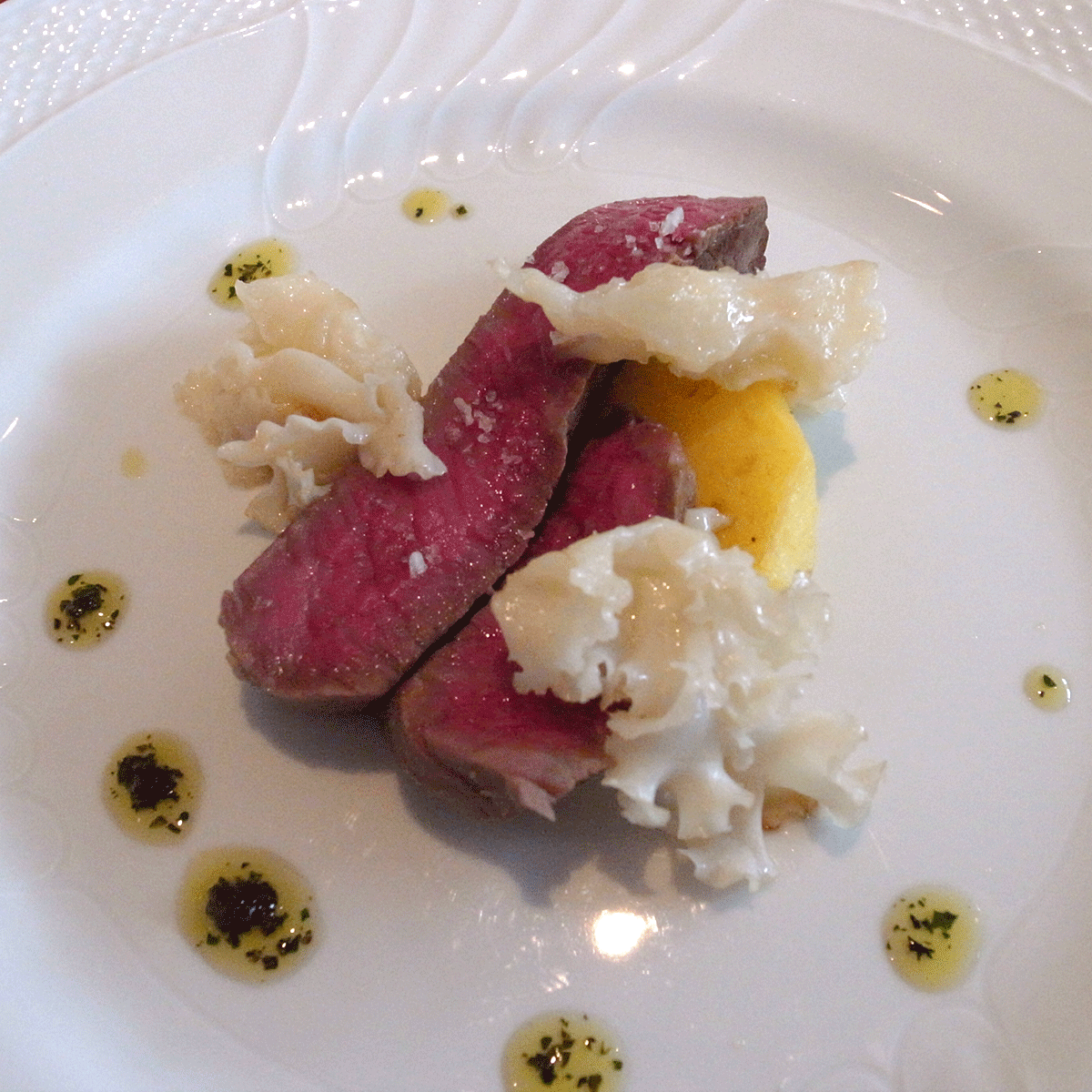 この大和牛の肉の火の通り方がもう絶妙でした