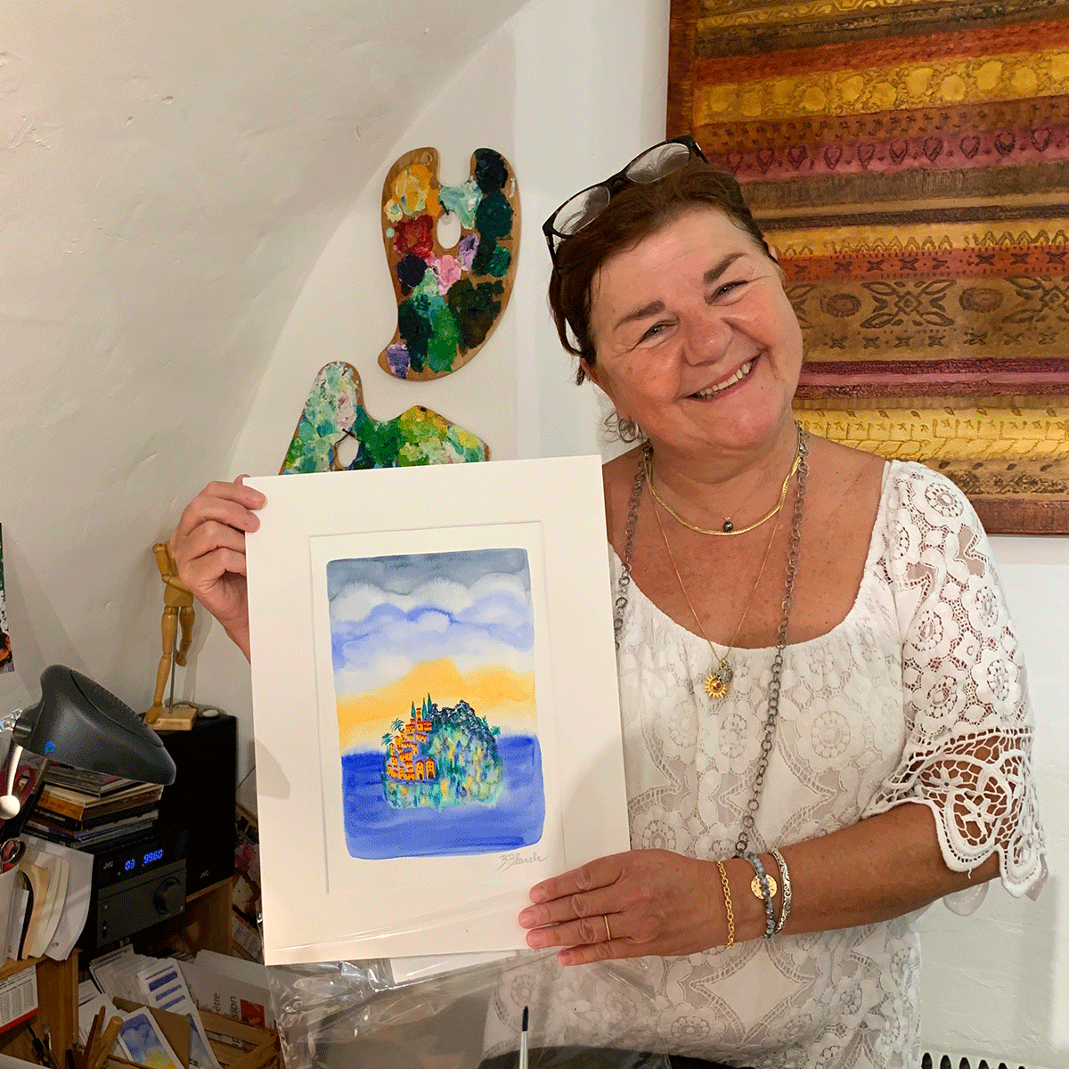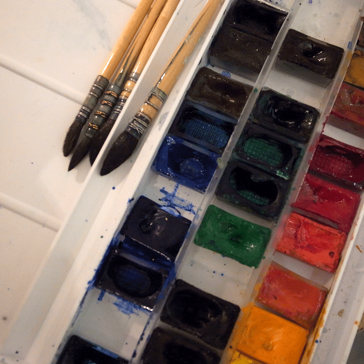 商売道具の絵の具のパレットも見せてもらいましたよ