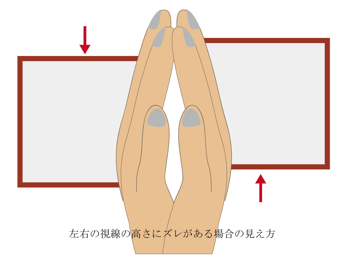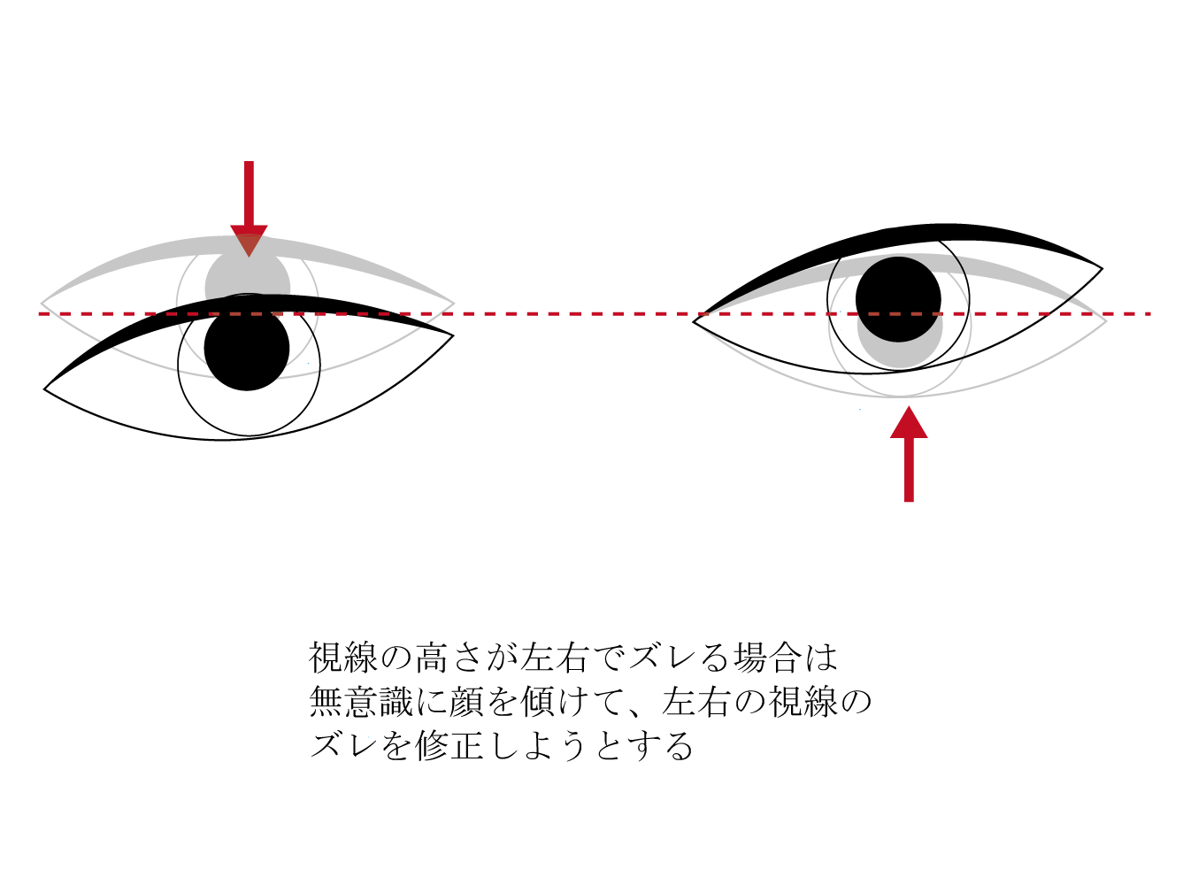 右目と左目の視線の高さがズレている場合はこんな見え方になります